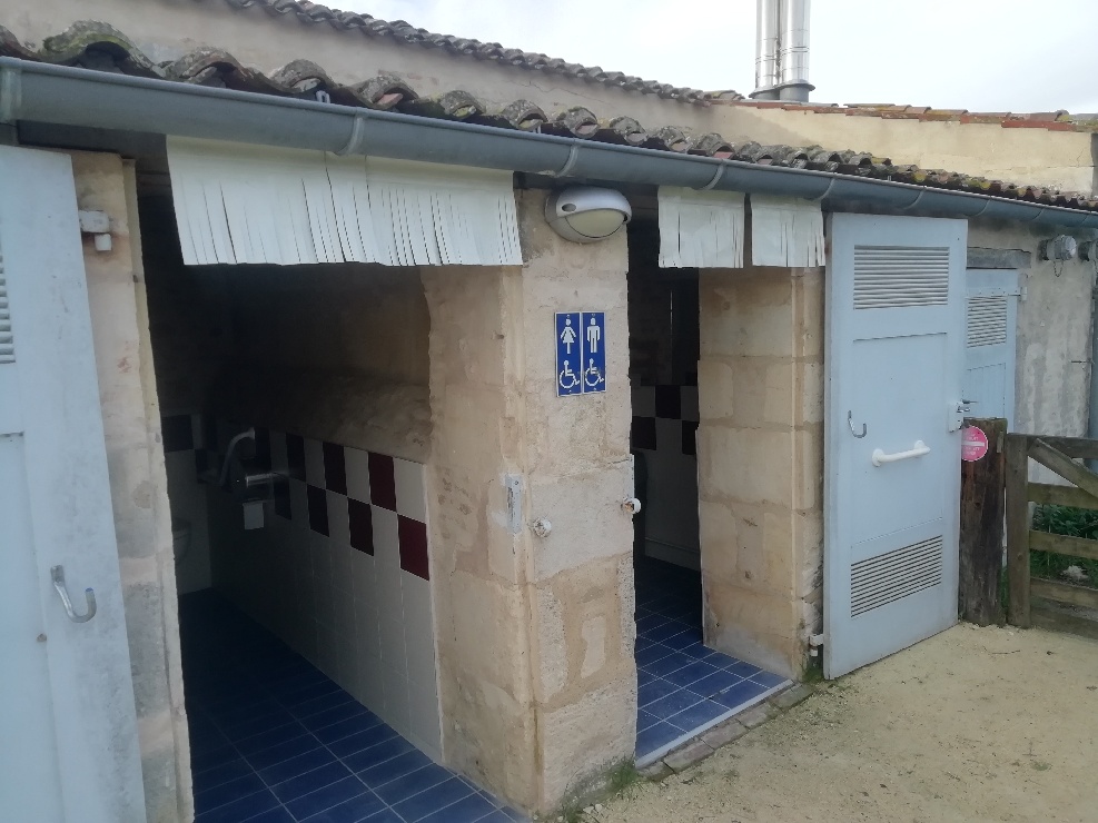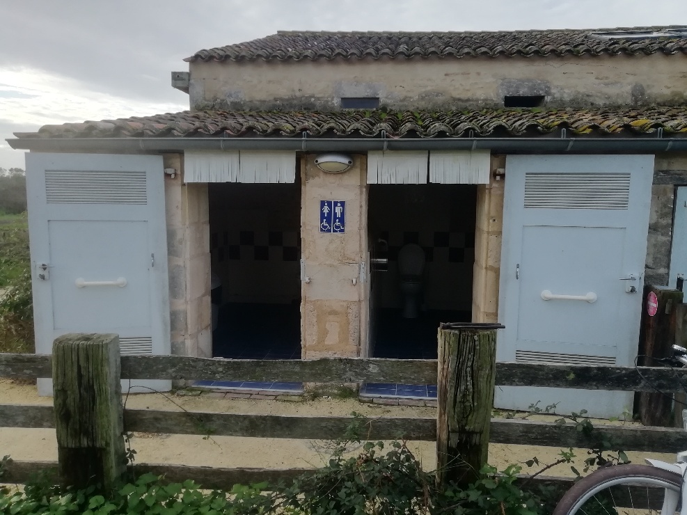 Les toilettes de l’espace d’accueil avec un dispositif de signalement des hauteurs de porte